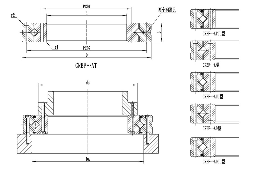 CRBF系列:內(nèi)外圈整體,帶安裝孔結(jié)構(gòu),有高精度高鋼性,節(jié)省空間等特點