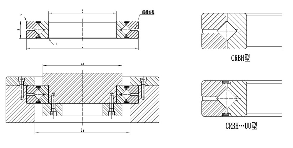 | 45 | CRBH 4510 A | CRBH 4510 AUU | 45 | 70 | 10 | 0.3 | 51.5 | 63.5 | 8.9 | 11.3 | 0.16 |