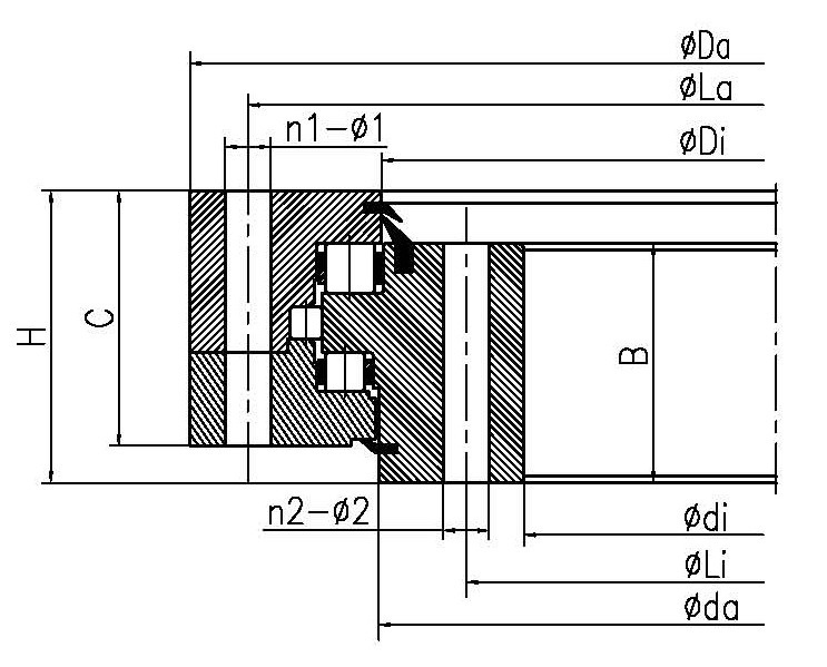 | 型號(hào) | LYC 代號(hào) | Da | D | di | H | La | Li | n1 | n2 | φ1 | φ2 | d | b | h | B | C | Di | da | Coa | Cor | (KG) |