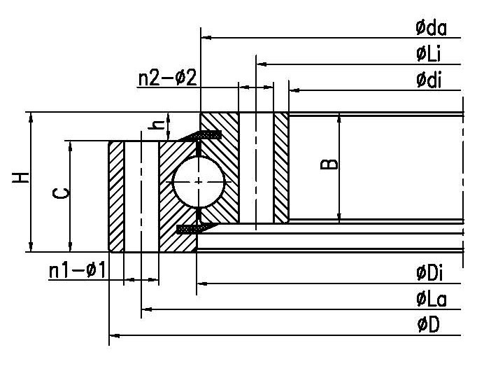 單排四點(diǎn)接觸球式回轉(zhuǎn)支承無齒式,由兩個(gè)座圈組成,結(jié)構(gòu)緊湊、重量輕、鋼球與圓弧滾道四點(diǎn)接觸,能同時(shí)承受軸向力、徑向力和傾翻力矩?;剞D(zhuǎn)式輸送機(jī)、焊接操作機(jī)、中小型起重機(jī)和挖掘機(jī)等工程機(jī)械均可選用。